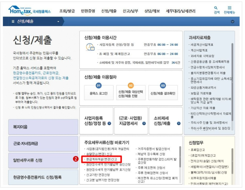 홈택스 접속 후 환급 계좌 등록 바로가기
