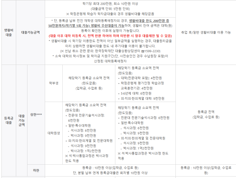 - 학자금 대출 정책은 해마다 변경되므로, 매 학기마다 한국장학재단 홈페이지에서 확인하세요.