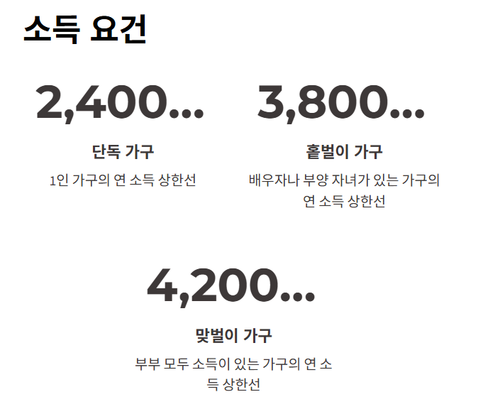 - 맞벌이 가구: 연 소득 4,200만 원 미만